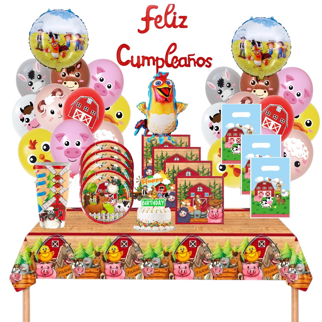 Transforma tu próxima celebración en una experiencia inolvidable con nuestra exclusiva colección de artículos de decoración de fiesta inspirados en los adorables animales de la granja. Desde coloridos banderines y globos en forma de vacas, cerdos y gallinas, hasta manteles y platos desechables con estampados de granja, cada detalle está diseñado para sumergir a tus invitados en un auténtico ambiente campestre.