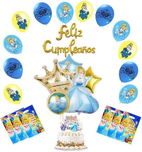 Kit de globos decorativo Feliz Cumpleaños Cenicienta ( Princesa Disney)