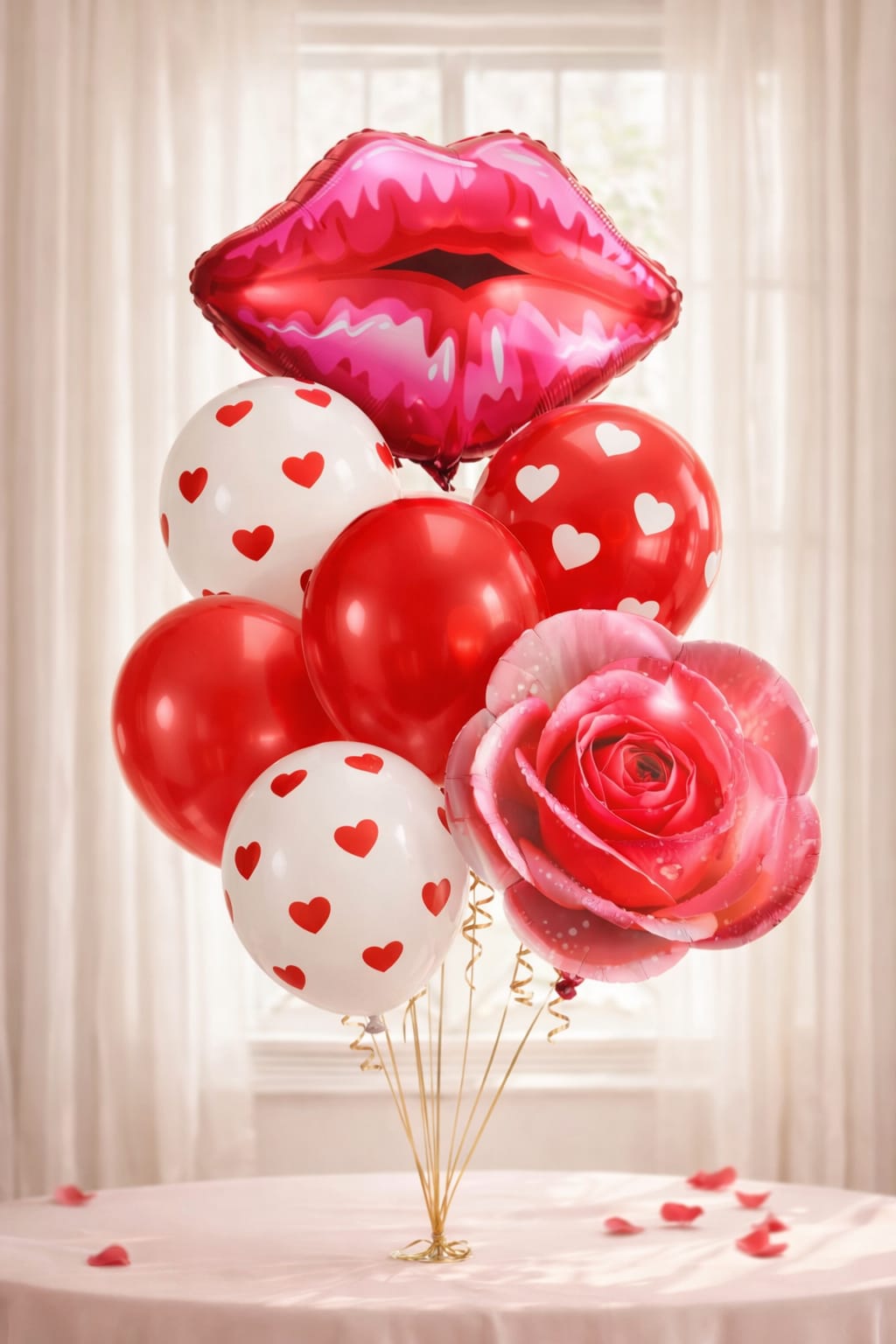 Cantidad: 6 globos latex ( 3 rojos y 3 blancos estampado corazon)