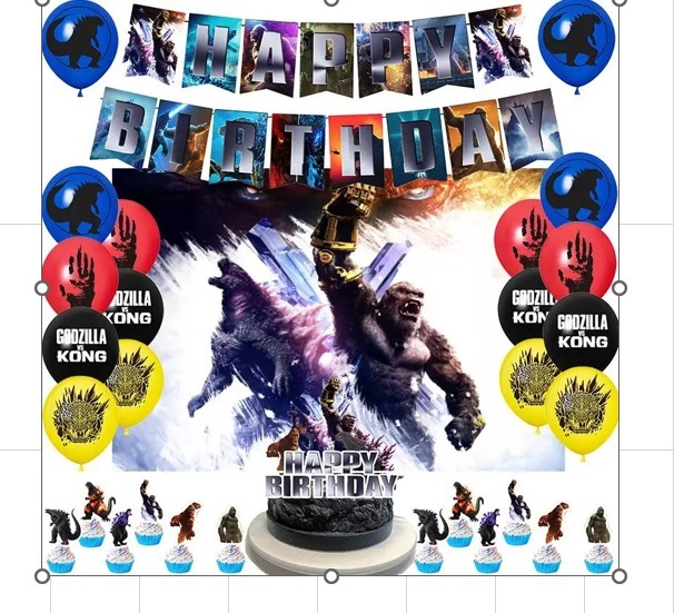 Set Decorativo + Fondo Telón Cumpleaños King Kong Vs Godzilla