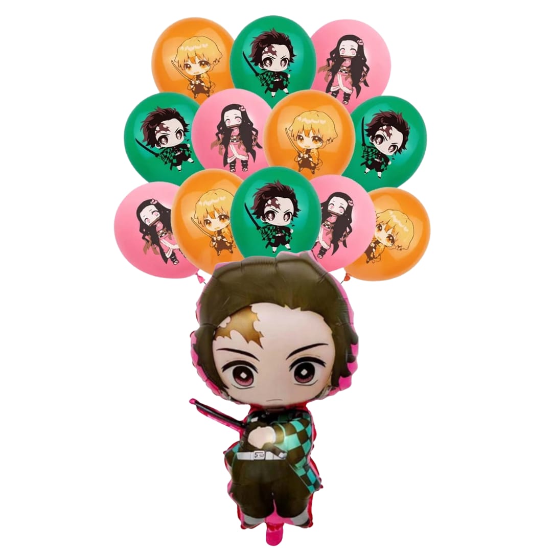 Set Globo aluminio + Globos Látex Cumpleaños Demon Slayer