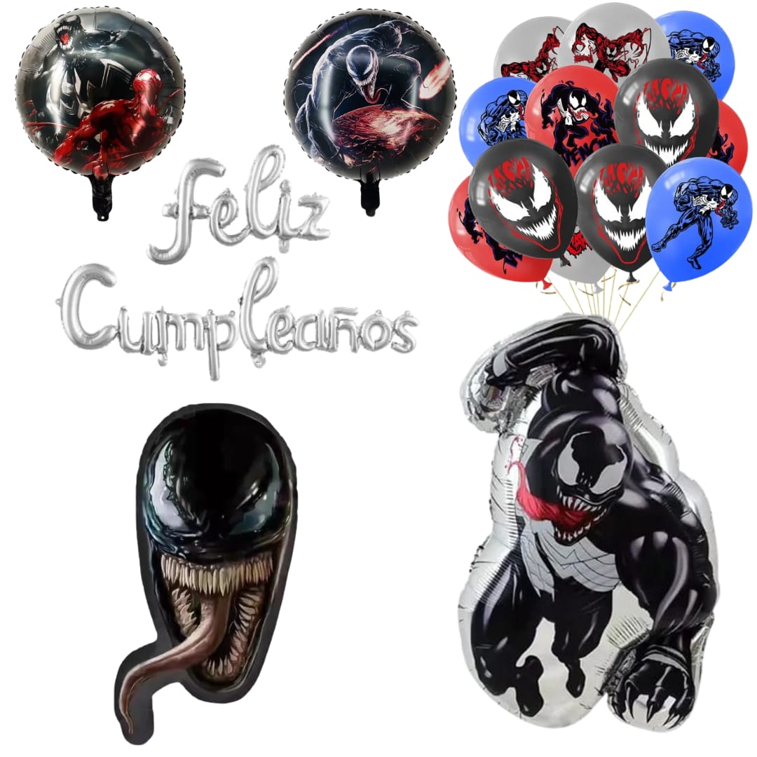 Set Globos Aluminio + 12 Globos Látex Feliz Cumpleaños Venom