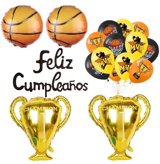 Set Globos Aluminio + 12 globos Látex Feliz Cumpleaños Basketball
