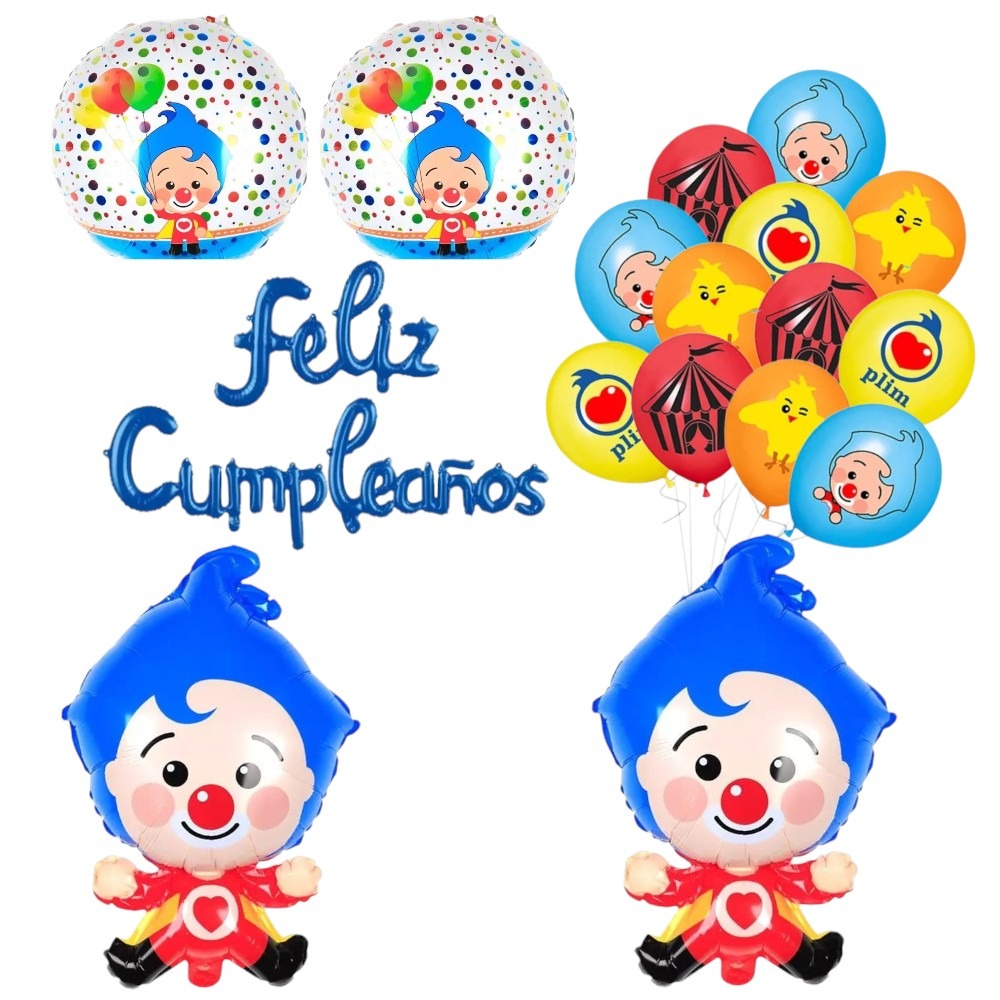 Set Globos Aluminio + 12 globos Látex Feliz Cumpleaños Plim plim